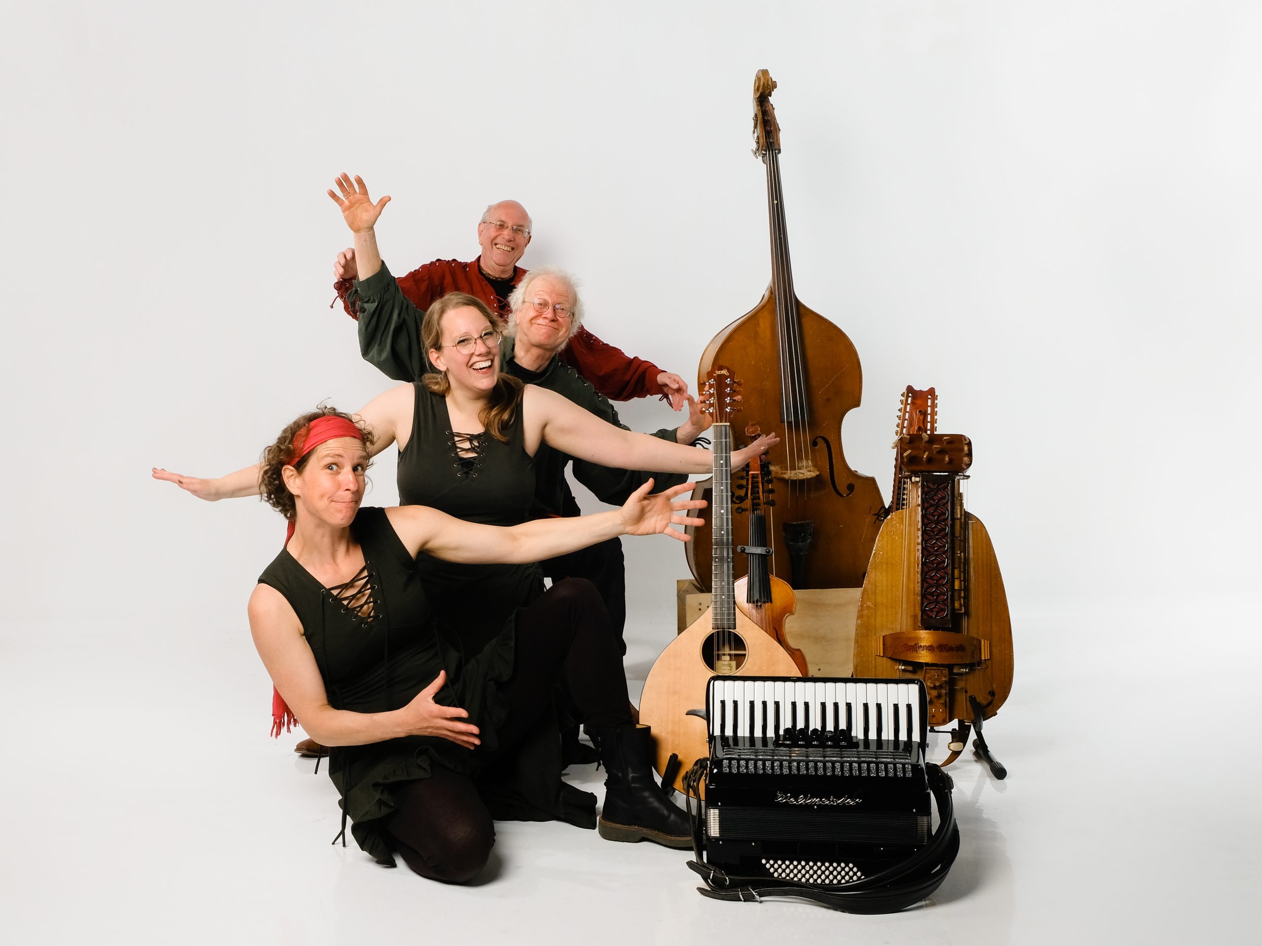 back bouzouki, maar ook gitaar, accordeon, contrabas en fluiten.
